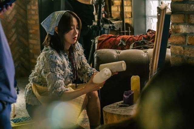 Kim Yuri rolls up her sleeves differently than her usually fashion to open her fully-develop "Law Cafe". As a leader in a double-major fashion, she shows off a lovely cleaning fashion of 'pattern overload' such as a tweed jacket, a floral-patterned bandana with a matching light blue clothes, and a yellow checkered apron. Her curiosity grows as she wonders around the eerie space shrouded in darkness and dust can be transformed into a "Law Cafe", and why Kim Yuri, who was excitedly cleaning, suddenly stopped.